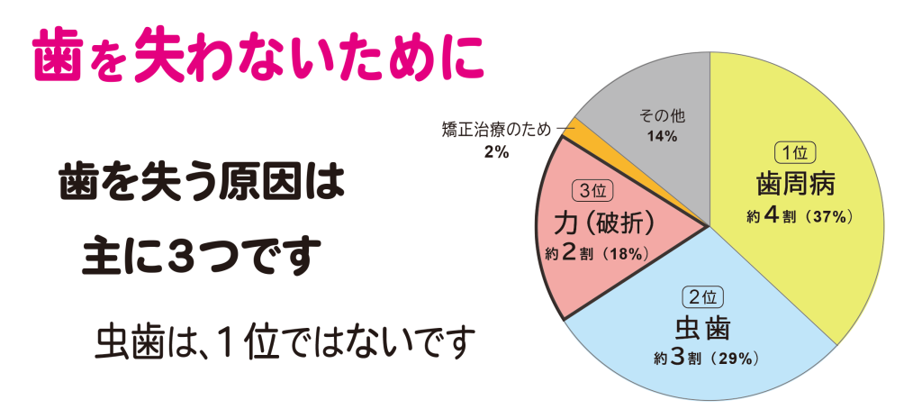 歯根破折とは、歯の根の部分に亀裂や破損が生じる状態で、文字通り歯が破損するということです。原因の一つとして過度な「噛み締め」が挙げられます。噛み締めで歯が割れるというと驚かれるかもしれませんが、実は歯がなくなる原因はおおよそ次の3つのパターンになります。