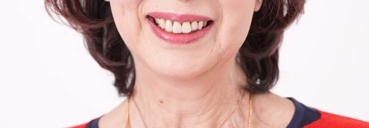 実は、女性の場合、入れ歯の役割で意外と大きいのが「審美的なサポート」です。 噛み合わせが整うと、口の周りの筋肉(口輪筋)が正しく使われるようになり、自然と口角が上がります。